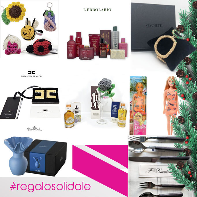 Si ringrazia per la donazione degli articoli messi a disposizione (in ordine alfabetico): Arte Legno, Bon Prix Italia, Bormioli Rocco, Cantine Maschio, Da-Dabrith, Distilleria Marzadro, Elisabetta Franchi, Ferrari, L’Erbolario, i partecipanti di Gomitolorosa4arts, Mattel Italy, Nespresso, Neva Posateria Creativa, Neò, Orphea, Patrizia Da Re, Pedrini, Pernici, Piacenza Cashmere, Rosenthal, RCR Cristalleria italiana, Salvatore Ferragamo, Sambonet, Sara Valente, Tessuti F.lli Graziano, Venchì, Veschetti Gioielli, Weissestal Home Concepts.