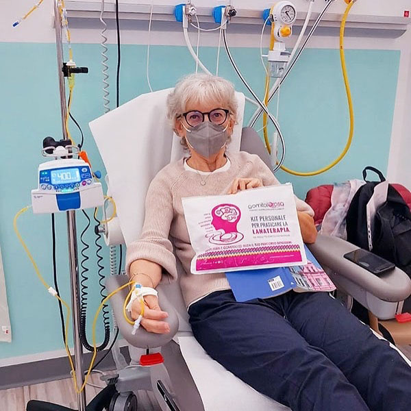 Oggi siamo in 40 Ospedali italiani, da nord a sud del paese, dove portiamo la LANATERAPIA, il lavoro a maglia terapeutico, attraverso la donazione ai pazienti dei nostri KIT PERSONALI per praticarlo, e lo facciamo anche grazie al sostegno di importanti realtà come la Fondazione per la Formazione Oncologica che ne apprezza il valore sociale e terapeutico e la grande capacità di poter raggiungere un importante numero di persone da sensibilizzare riguardo all’importanza della prevenzione.