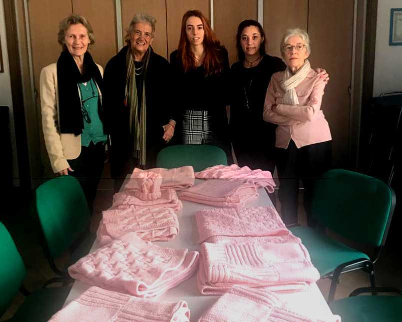 Il Segretario generale, sig.ra Ughetta Radice Fossati, della Fondazione Itaca ha consegnato a Daria Caccia Dominioni, Presidente del CAV Mangiagalli, un berrettino e dieci copertine, realizzate dalle volontarie con la lana donata da Gomitolorosa.